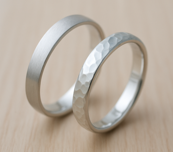 お作りいただく指輪の仕上げ方法は、ポリッシュ、マット、槌目、サンドマットの4種類からお選びいただけます。